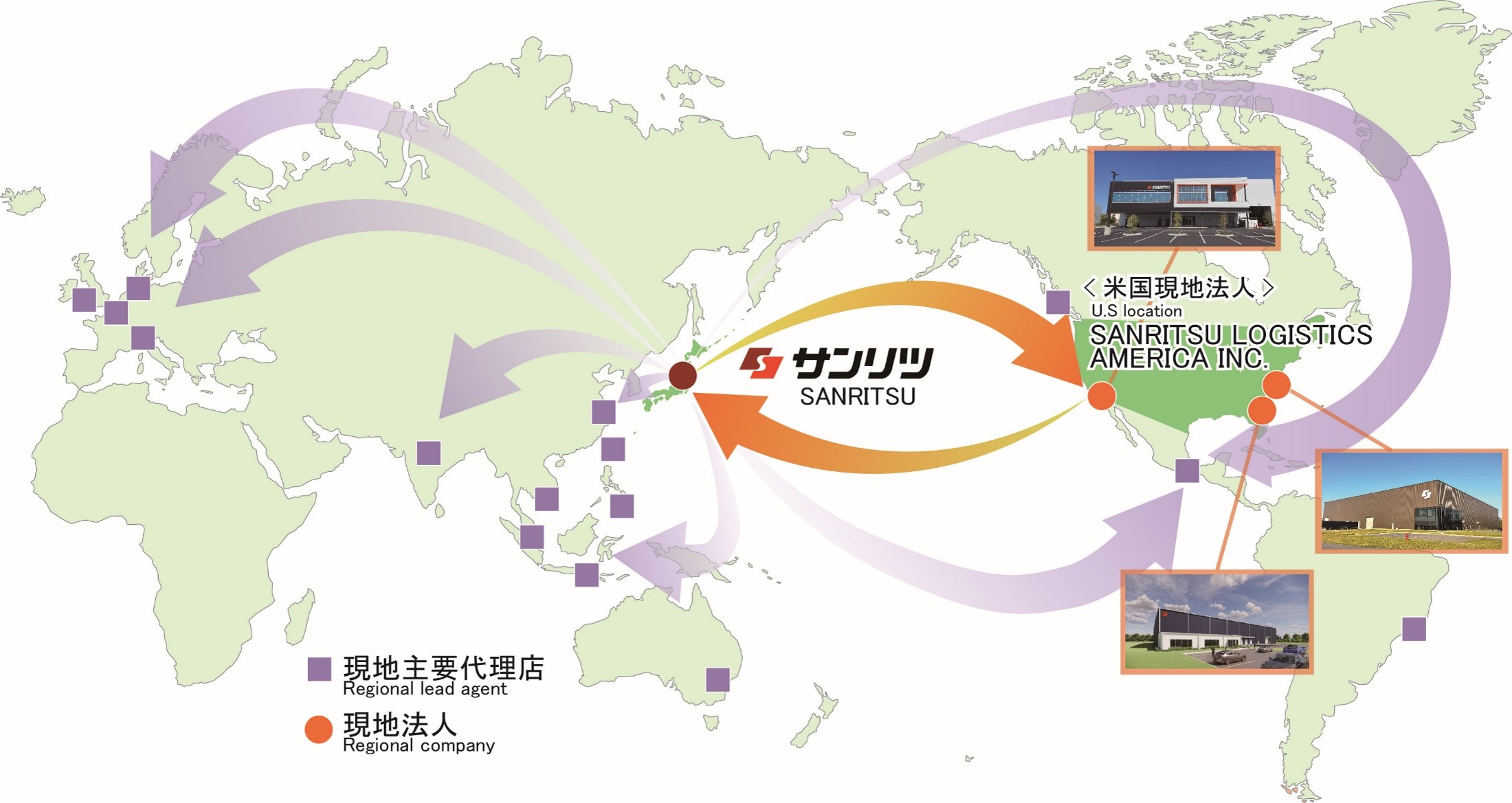 海上貨物は横浜港、航空貨物は成田空港に大型拠点を構えてサービス展開をしています。